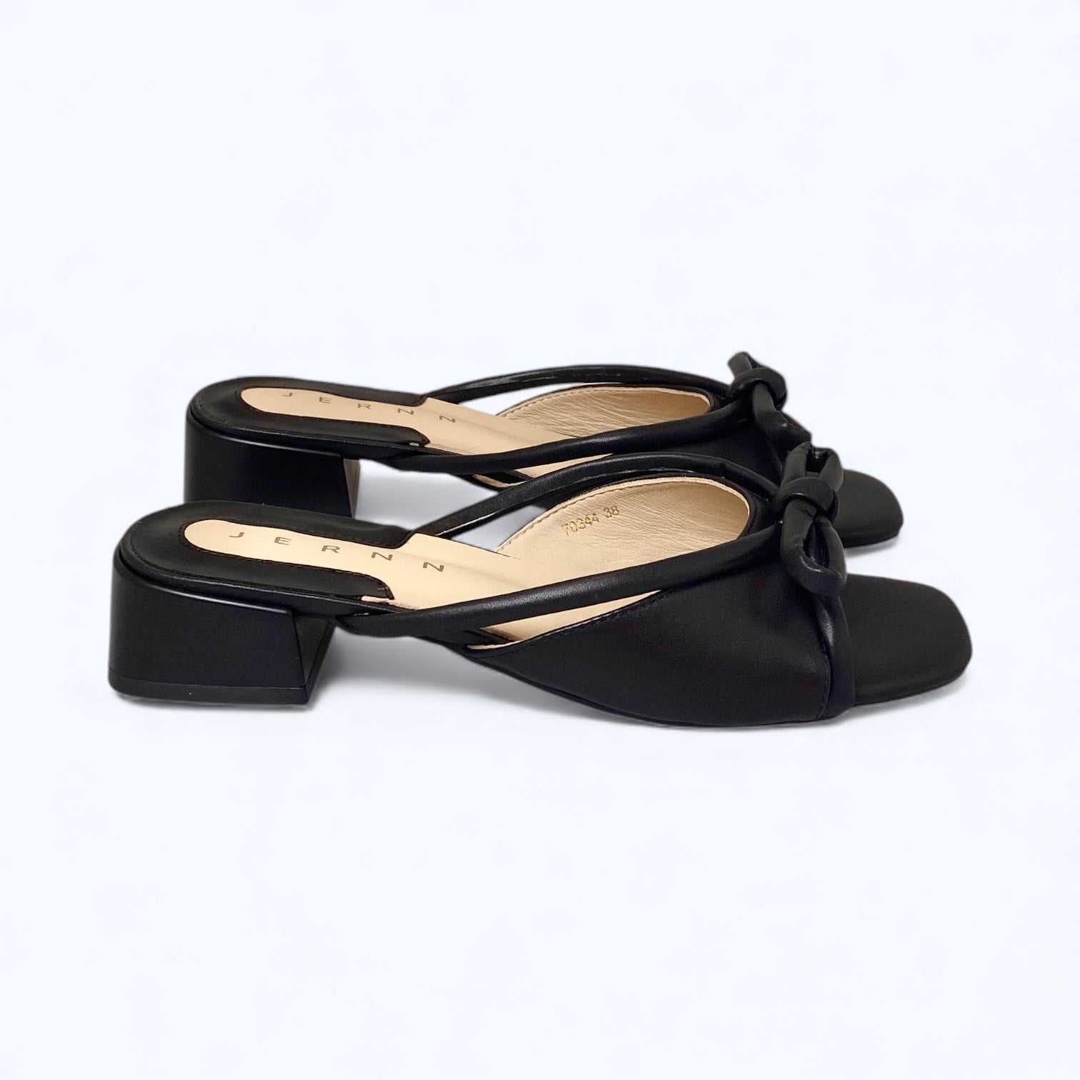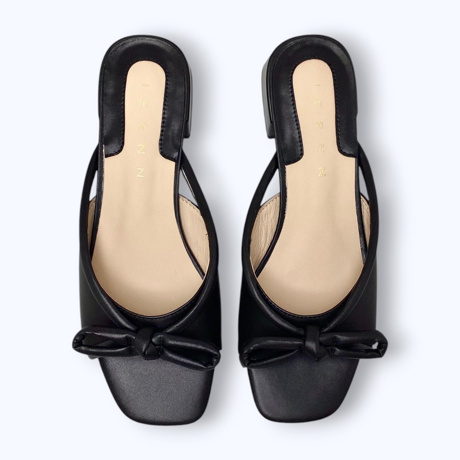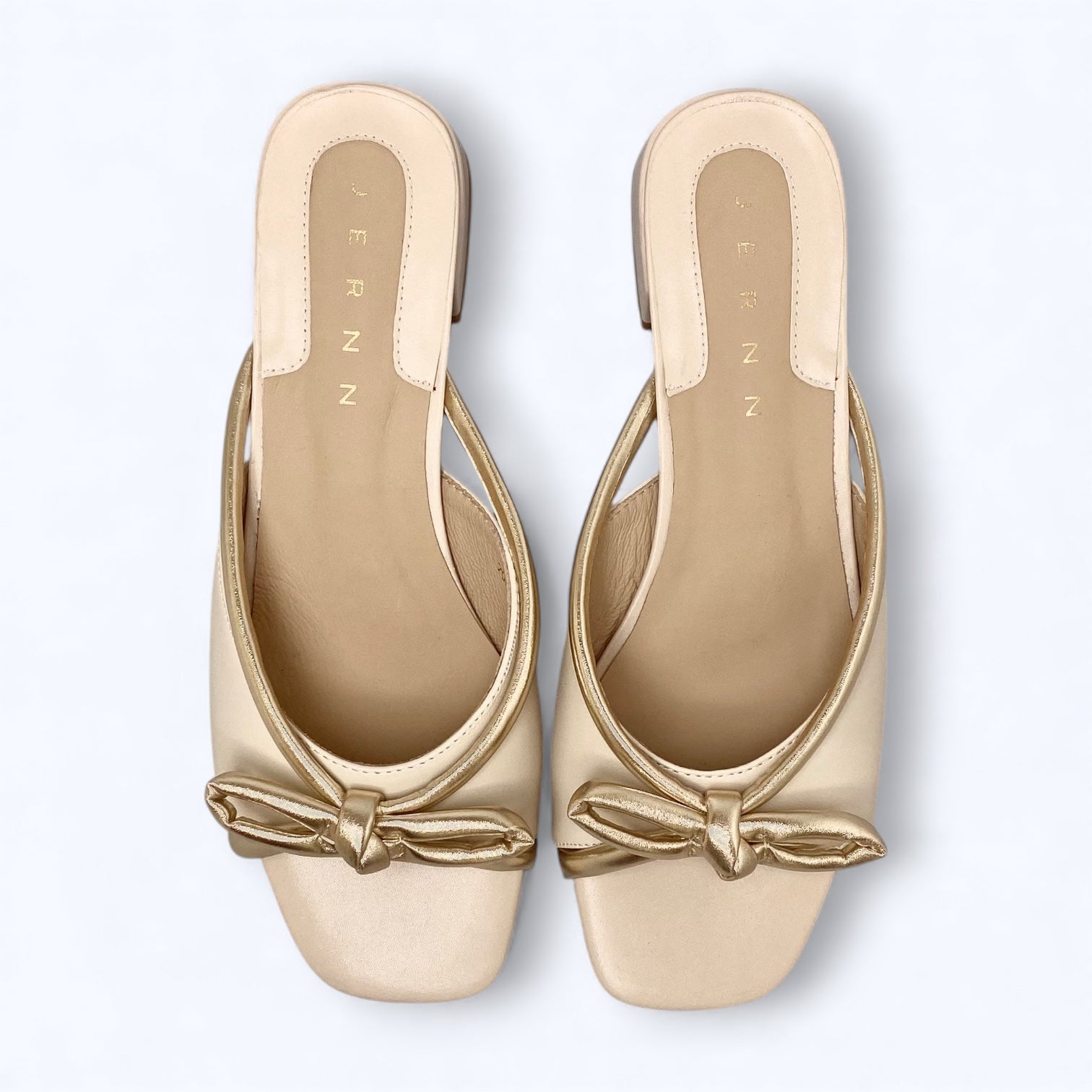 Soft, graceful, and timelessly feminine — these low sandals celebrate understated elegance through every detail. Crafted in JERNN’s signature buttery lambskin leather, the design features a straight-across strap adorned with a sculpted ribbon accent, lending a ladylike finish to a clean, modern silhouette.